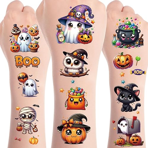 8 Sheets 200+ Halloween Temporary Tattoos Halloween Party Decorations Happy Boo Day Stickers Ghost Pumpkin Theme Temporary Tattoos Party Favors Supplies Prizes Rewards
