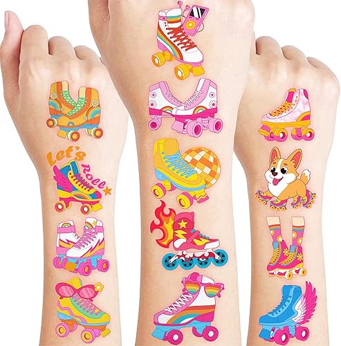 96 PCS Roller Skate Pre-Cut Temporary Tattoos for Kids | Super Cute Roller Skate Themed Birthday Party Favors, Supplies, Decorations, Fake Tattoo Stickers, School Rewards Prizes & Gifts For Boys Girls