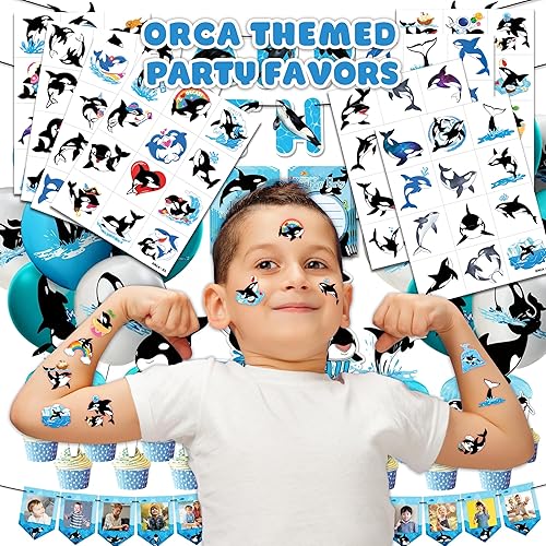 96 PCS Cute Orca Pre-Cut Temporary Tattoos for Kids | Super Cute Orca Themed Birthday Party Favors, Supplies, Decorations, Sea Ocean Animal Whale Tattoo Stickers, School Rewards & Gifts For Boys Girls