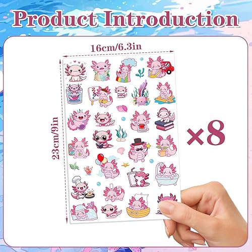 Gameza Pink Axolotl Temporary Tattoos, 200+ Pink Axolotl Birthday Decorations Party Favors Supplies Decor, Funny Animals Themed Tattoo Stickers Gifts for Kids Adults Rewards Prizes