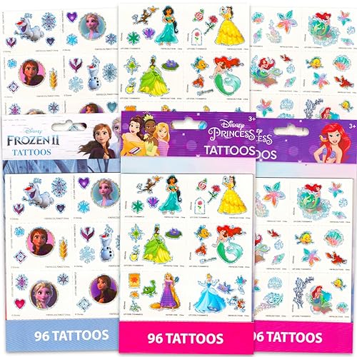 Disney Princess Temporary Tattoos for Kids Bundle - Over 280 Temporary Tattoos Featuring Little Mermaid, Frozen, Cinderella, More | Disney Princess Party Favors for Kids, Girls