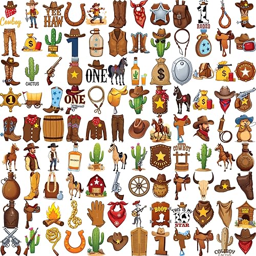 108 Pcs Cowboy 1st Temporary Tattoos for Kids Boys Waterproof Western My First Rodeo Fake Tattoo Stickers Wild West Tattoo Decorations for One Year Old Birthday Gift Party Supplies Favors