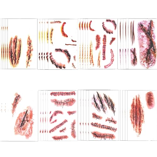 40 Sheets Fake Scars Temporary Tattoo Fake Scratch Scar Wound Body Face Stickers Halloween Makeup for Adults Cosplay Party