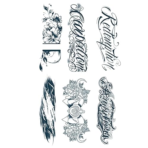 Semi-Permanent Tattoos for Men, Women & Adults - 6 Sheets Realistic Half Arm Sleeve Temporary Tattoos, Waterproof & Long-Lasting Fake Tattoos for Body Art 5.9"×9.1"