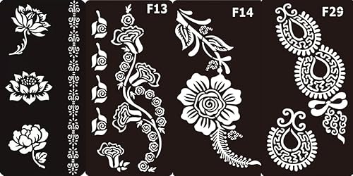 4 Sheets Henna Tattoo Stencils Arm Hand Tattoo Template Tattoo Stickers for Face Body Paint DIY