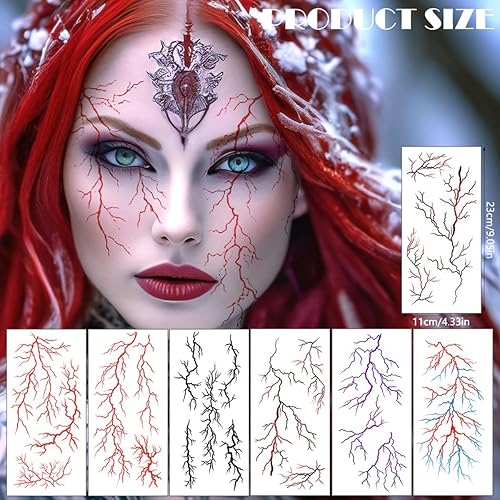 6 Sheets Halloween Face Tattoos Blood Vessels Streaks Realistic Slit Blood Vessel Cracks Horror Temporary Tattoos Body Vampire Zombie Makeup for Halloween Cosplay Rave Party Decor