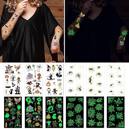 20 Sheets Glow Halloween Party Supplies, Temporary Tattoos for Kids Birthday Party Decorations Favors, Halloween Goodie Bag Fillers Games Accessories