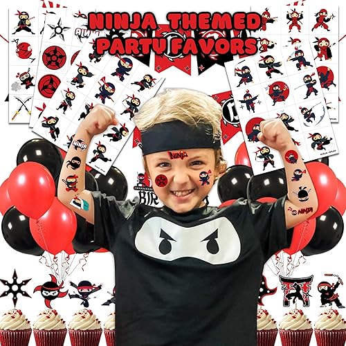 60 PCS Martial Arts Warriors Pre-Cut Temporary Tattoos for Kids | Super Cute Themed Birthday Party Favors, Supplies, Decorations, Fake Tattoo Stickers, School Rewards Prizes & Gifts Boys & Girls
