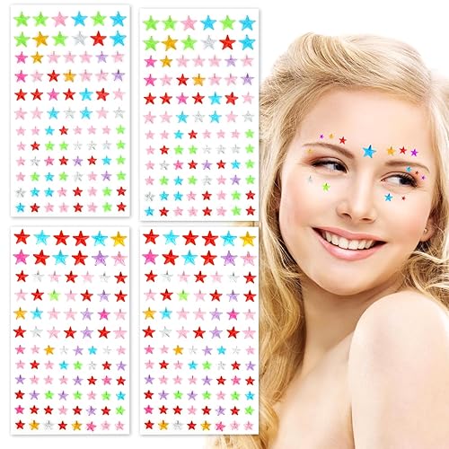 4 Sheets Star Face Stickers, Colorful Star Face Gems for Women, Self-Adhesive Faces Stars Stickers for Eye Body Makeup, Carnival Parties, Music Festival