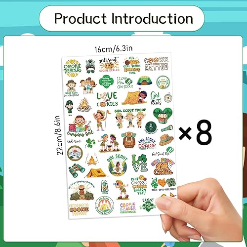 Gameza Girl Scout Temporary Tattoos - 200+ Girl Scout Party Decorations Favors Supplies, Junior Brownie Scouts Tattoo Stickers Gifts for Kids, Camping Cookies Birthday Decor Prizes Rewards
