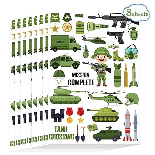 Army Temporary Tattoos for Kids, 200+ Army Birthday Party Decorations, Military Camouflage Tank Helicopter Tattoo Stickers for Boys Girls Camo Soldier Party Favors Supplies School Prizes Rewards