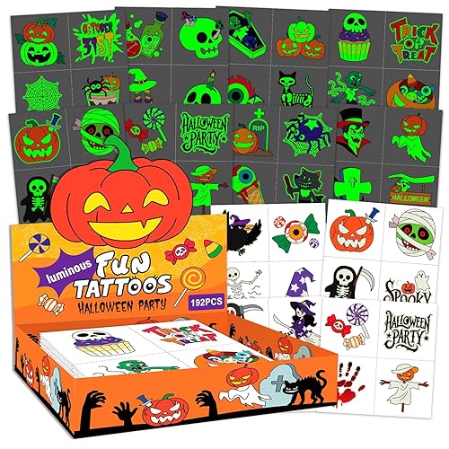 EMOME 192 PCS Halloween Tattoos for Kids, Luminous Temporary Tattoo Stickers for Halloween Party Favors Decorations, Halloween Gifts for Kids Goodie Bag Stuffers