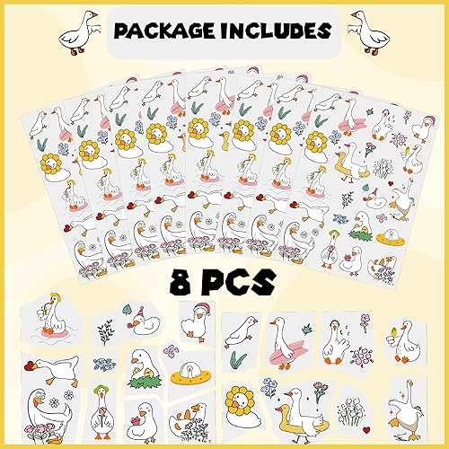 Silly Duck Temporary Tattoos Kids - 160+ Pcs Funny Goose Tattoo Party Decorations Fake Temp Stickers One Goose Birthday Decor for Kids Baby Boys Girls Geese Animals Duck Theme Gifts Supplies Favors