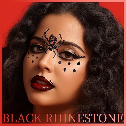 Teenitor 3 Sheets Red and Black Face Gems Stick on Hair Gems,Face Jewels Self-Adhesive Face Rhinestones for Makeup Face Eyes Body, Festival Rave Accessories for Women Halloween Makeup