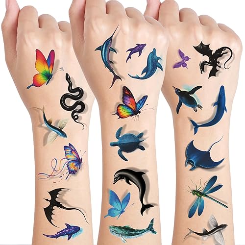 Konsait 19 Sheets 3D Under the Sea Party Favors Shark Tattoos Sea Turtle Temporary Tattoos for Kids Fake Ocean Tattoo for Boys and Girls Birthday Party Favors