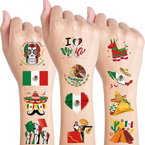 Mexican Independence Day Temporary Tattoos,96pcs Pre-cut Individually Mexico Flag Themed Face Tattoo Stickers for September 16th Viva Mexican Party Decorations Favors Suppy