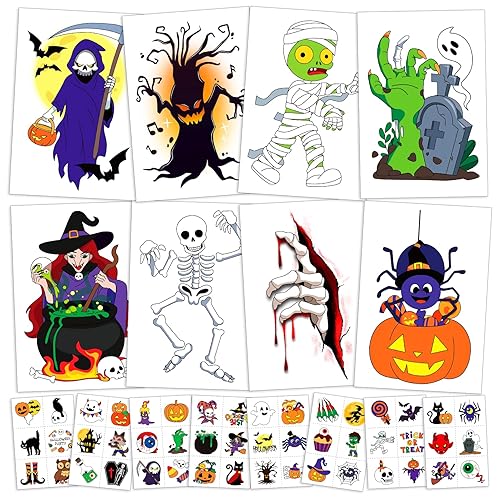 Leesgel Halloween Tattoos for Kids (56 Styles) - Temporary Tattoo Stickers for Boys & Girls, Trick or Treat, Party Favors, Decorations, Accessories, Goodie Bag Stuffers, Prizes for Kids Classroom
