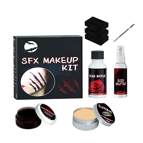 Halloween Makeup Kit Face Painting Set Scar Wax with Spatula Tool Blood Spray Stipple Sponges Bruise Makeup (01)