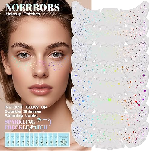 Noerrors 24pcs Glitter Freckles Face Tattoo Sticker, Temporary Holographic Chameleon Fake Faux Freckle Iridescent Sparkle Multichrome Speckles Patches Mermaid Makeup for Musical Festival Party