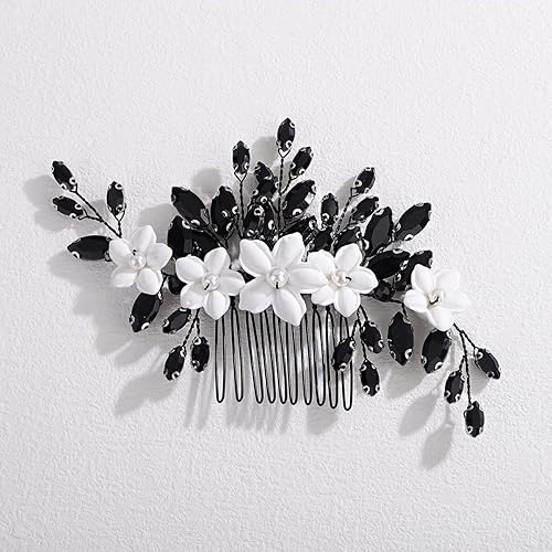 Xerling Bride Wedding Flower Red Rhinestones Hair Comb White Floral Side Comb Hair Piece Headpiece Bridal Head Jewelry Accessories for Women (Gold Red)