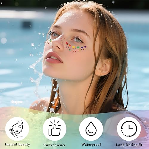 Shimmering Rainbow Pride Tattoos, 6-Pack Temporary Face Art Glitter Stickers for Festivals & Celebrations (Pride Glow)