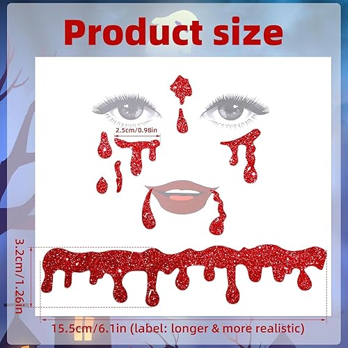 2pcs Halloween Vampire Cospaly Face Jewels, Blood Costume Face Makeup Gems Stickers, Vampire Costume Temporary Tattoos Accessories for Women Festival Scary Jewels Stick on for Adult Party Cosplay