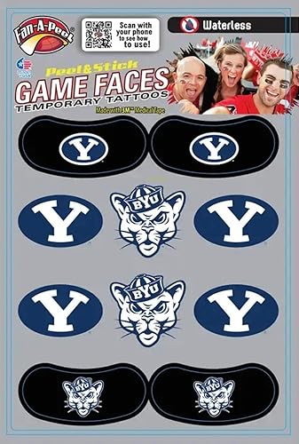 10 Pack Combo 6 Spirit Tattoos & 4 Eye Strips Officially licensed Waterless Peel & Stick Temporary Tattoos BYU Brigham Young