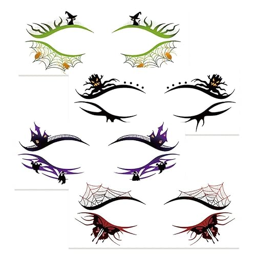 Halloween Eye Shadow Sticker with Butterfly Ghost Colorful Witch Eyeliner Temporary Tattoos Eyeshadow Stickers for Women Girls Halloween Carnival Festival Masquerade Accessories 4Pcs