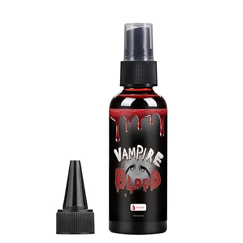 Fake Blood Spray, 2 fl oz Washable Fake Blood Makeup Kit, Realistic Dripping Fake Blood, Halloween Fake Blood for Face, Perfect for Vampire Makeup, Clown & Sfx & Cosplay & Zombie Make Up Kit, 1Pack