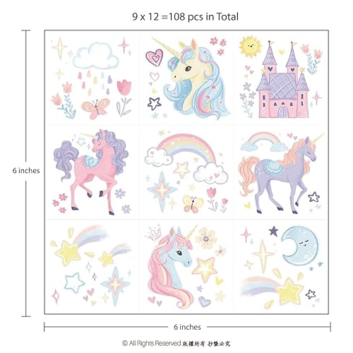 Cheerland 108pcs Unicorn Tattoos Girls Unicorn Birthday Party Decorations Magical Party Favors Birthday Pastel Party Supplies Rainbow Unicorns Temporary Tattoos Kids Temp Tats Girl Baby Shower