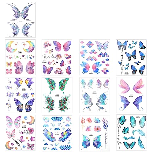 Butterfly Temporary Tattoos 13 Sheets Glitter Butterfly Tattoos Temporary for Halloween Women Face, Eye, Neck, Body, Party, Gifts