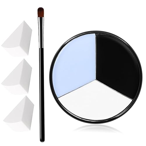 White Black Blue Halloween Face Body Paint with 3PCS Sponge and 1PC Brush, for Baseball Sports(Eye Black) & Halloween, Face Painting Kit for Skeleton Skull Clown Makeup, , Cosplay, SFX Costumes