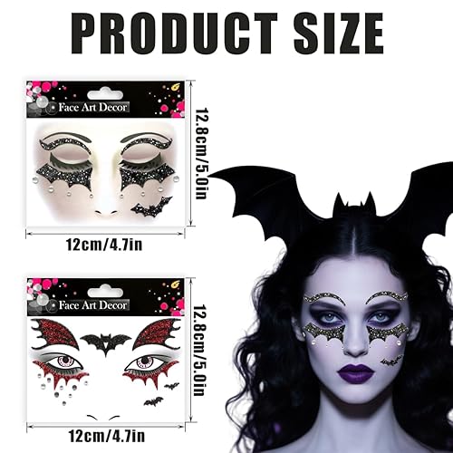 Halloween Face Fake Tattoos Glitter Rhinestones Face Temporary Tattoos Bat Blood Tears Decals Kid Girl Face Eye Accessories for Cosplay Make Up Festival Party