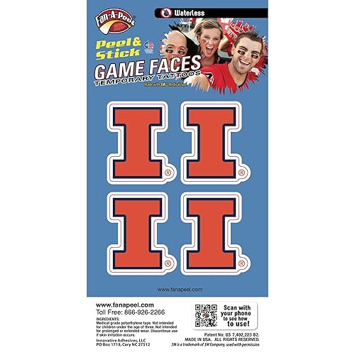 Fan-A-Peel Illinois Waterless Temporary Tattoos - Hypoallergenic Peel and Stick Waterproof Temporary Tattoos - Officially Licensed