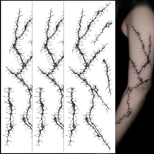 Halloween Black Stitch Scar Body Face Temporary Tattoos Sticker Fake Stitch Scab Waterproof Tattoos for Women Men Halloween Masquerade Prank Makeup Cosplay Party Accessories