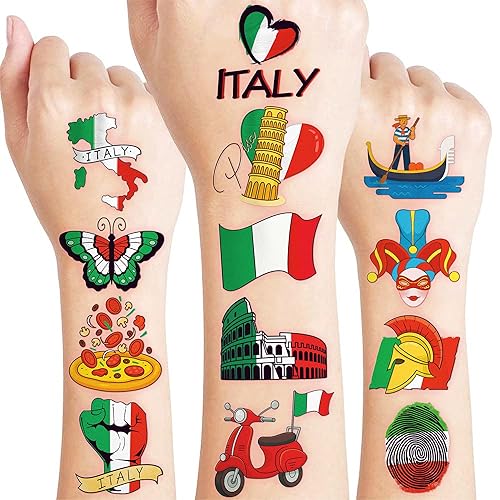 96 PCS Italy Italian Italia Flag Pre-Cut Temporary Tattoos for Kids | Super Cute Italy Themed Birthday Party Favors, Supplies, Decorations, Fake Tattoo Stickers, School Rewards Gifts For Boys & Girls