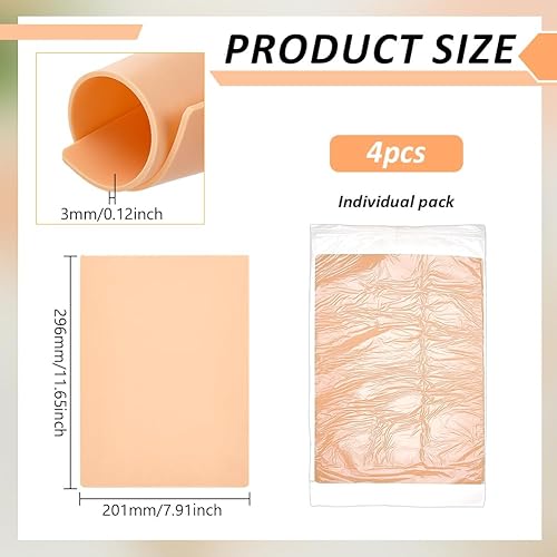 FINGERINSPIRE 4PCS Tattoo Practice Skin 3MM Thick Double-Sided 8x11.7 Inch PeachPuff Silicone Practice Sheets A4 Size Durable Synthetic Skin for Tattoo Training