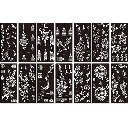 Xmasir Henna Tattoo Stencils Kit, 14 Sheets Temporary Tattoos Template Airbrush Indian Flower Body Art Tattooing for Women Girls Hands Forearm