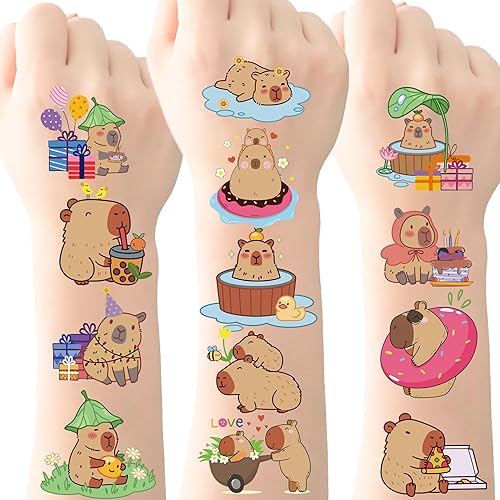 Capybara Birthday Decorations Temporary Tattoos - 240 Pcs Waterproof Stickers Fake Face Tattoo Capy Themed Funny Animals Favors for Kids Boys Girls Party Decor Rewards Prizes