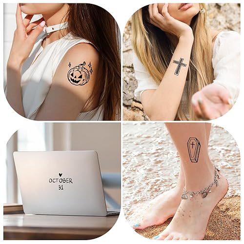 73 Pcs Halloween Temporary Tattoos for Kids, Black Ghost Silhouette Fake Tattoo Stickers for Halloween Party Decorations Supplies Favors Boys Girls School Gifts Rewards