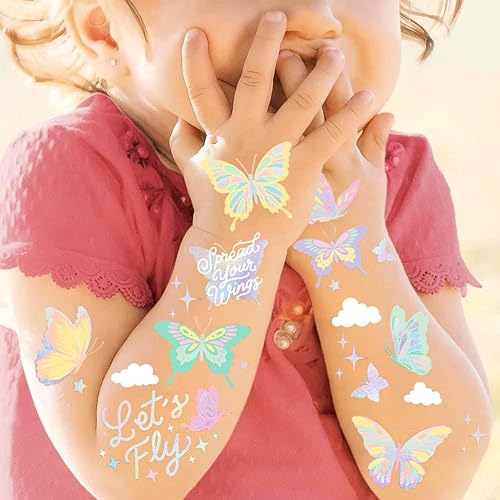 80 PCS Pastel Butterfly Temporary Tattoos for Girls – Super Cute Themed Birthday Party Favors, Supplies, Decorations, Fake Tattoo Stickers (40 Style*2 sheet)