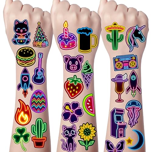 63pcs Y2K Disco Neon Temporary Tattoo Stickers, Waterproof Neon Temp Tatoo Sticker for Adult Women Men Hand Thigh Teen Teacher Rewards Party Favor Decor