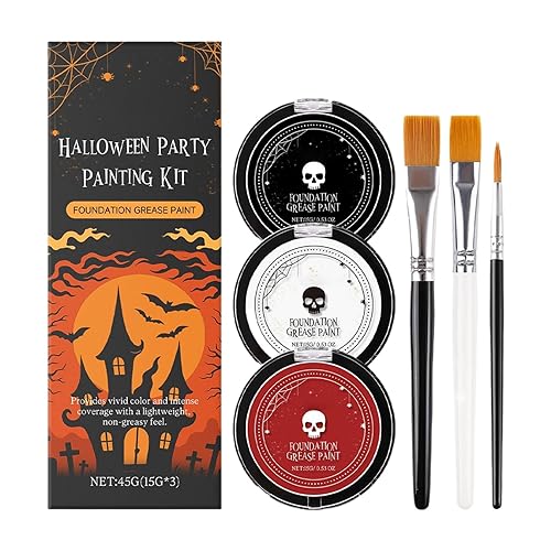 Goth White Foundation | Black White Red Face Body Paint with Brushes | Long Lasting Pigments Halloween Makeup Set for Stage Performance Themed Party Women Men
