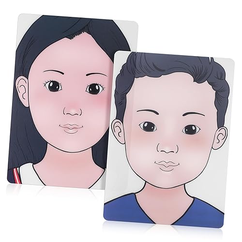 NOLITOY Reusable Face Paint Practice Board with Human Face Prints Lightweight Plastic Makeup Training Templates for Boys Portable Safe Rounded Corners