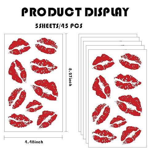 45 Pcs Red Kiss Temporary Tattoo Stickers, Red Lip Print Tattoo Kiss Face Tattoos, Waterproof Lip Mark Temporary Tattoo for Valentine's Day Halloween Costume Accessories Birthday Party Decoration