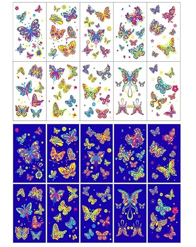 (100pcs)10 pieces, about 100 stickers in total..Colorful Butterfly Glow in the Dark Temporary Tattoo Stickers,.