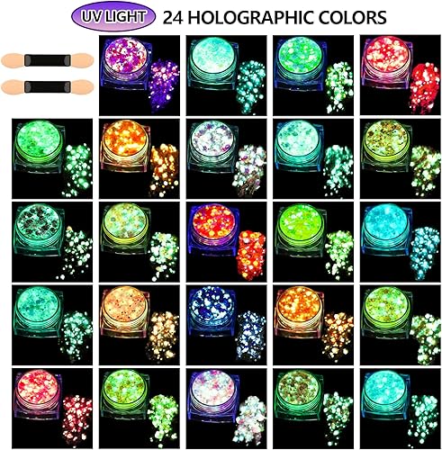 Teenitor 24 Colors Glow in The Dark Body Glitter Face Glitter Gel for Halloween, Hair Glitter for Kids Rave Accessories, Chunky Glitter Face Glitter for Women Makeup in Festivals Party