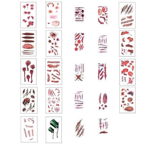 24PCS Halloween Scar Temporary Tattoos for Adults Halloween Makeup Kit Sticke Scary, Bloody, Face Stickers Scratches Tattoos