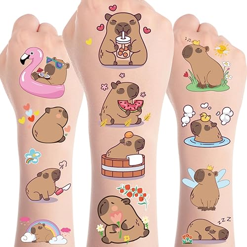 8 Sheets Capybara Birthday Party Decorations 200+ Capybara Temporary Tattoos Funny Animals Stickers Capybara Themed Temporary Tattoos Party Favors Supplies Prizes Rewards