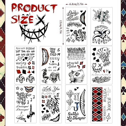Konsait 70 PCS+ Halloween Temporary Tattoos, Fake Clown Makeup Tattoos for Adult Kids Halloween Party Favor Black White and Red Clown Face Tattoo Cosplay Accessories 10 Sheets